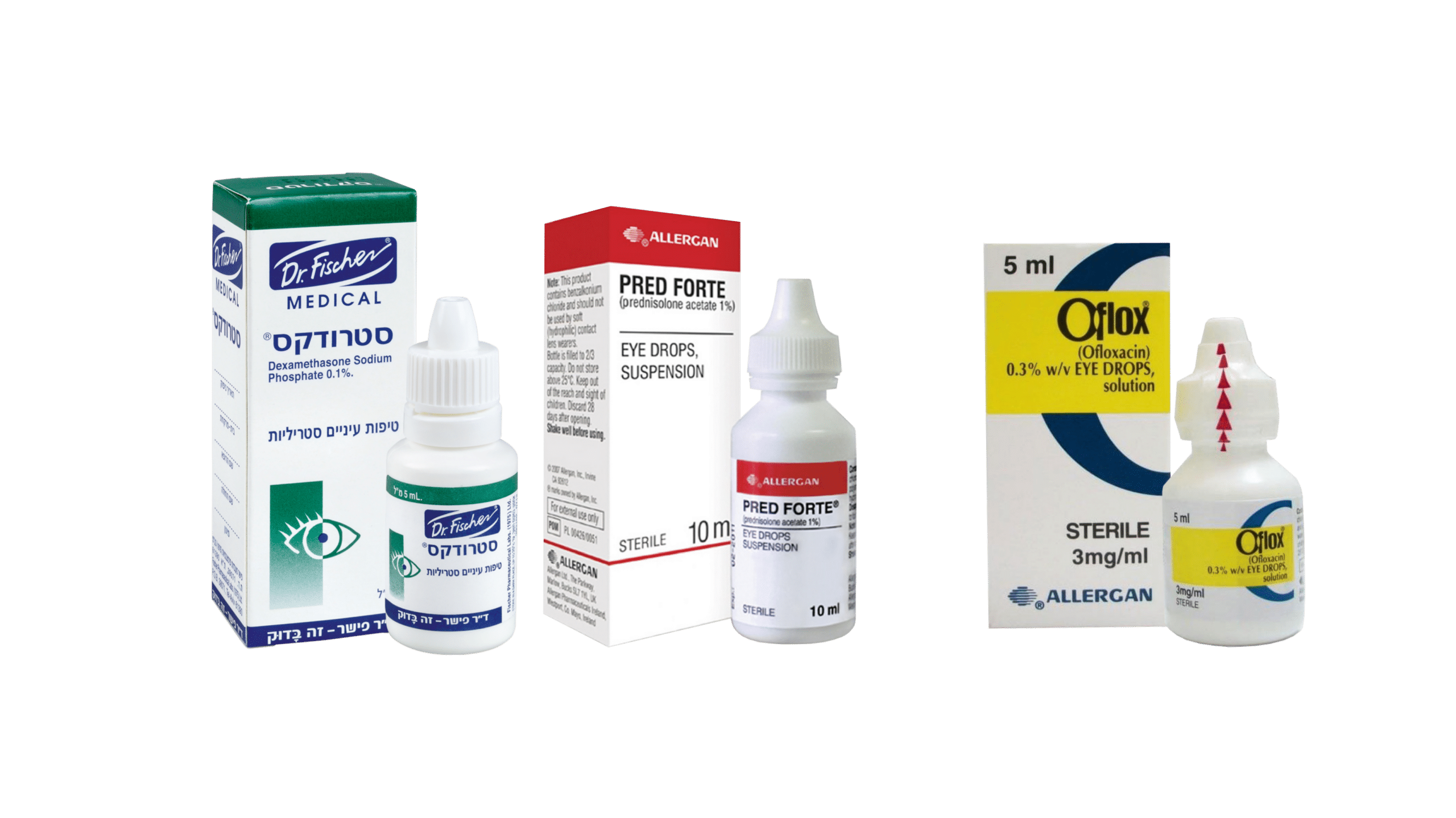 - יש להשתמש בשני סוגי הטיפות – טיפה אחת מכל סוג, 4 פעמים ביום: – אופלוקס (צהוב) – פרד פורטה או סטרודקס (אדום/ירוק)